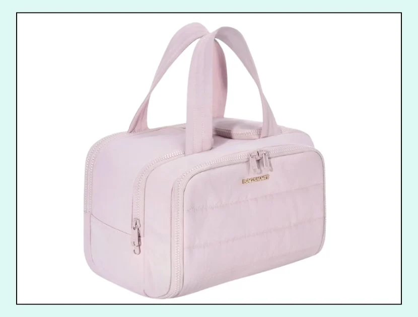 This roomy, all-in-one bag lets you consolidate toiletries, skincare, and makeup. The wide-open design and compartments make it easy to see everything, and the padded style protects your products. I bought three of these, one for me and one for each of my teenagers, and they keep us all organized.