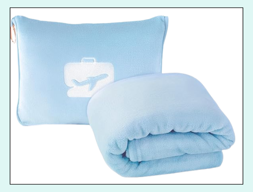This 2-in-1 blanket and pillow set is perfect for cold flights, road trips, or even overly air-conditioned hotels. The blanket is warm but lightweight, and it zips into a soft pillowcase with a sleeve that slides over your luggage handle. It also has a clip so you can attach it to your backpack.