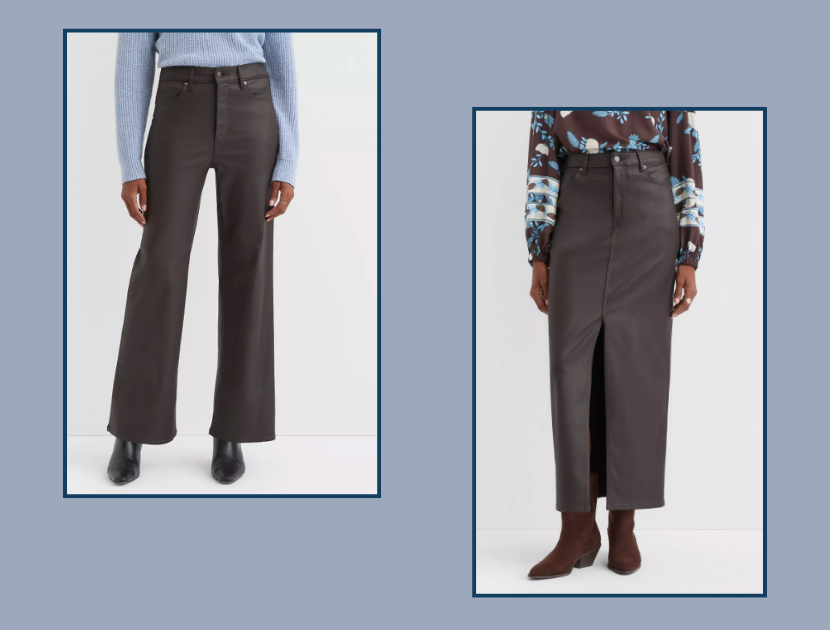 For something different I picked this skirt in the same rich brown hue. The maxi length, denim coating, and sleek silhouette give it a fresh spin on elevated casual.