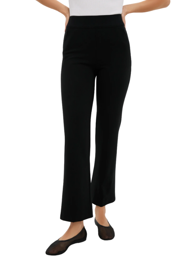 Made with a high-compression fabric that smooths and flatters, they feature a pull-on waistband, a subtle flare, and a clean finish that works beautifully with everything from sneakers to loafers. The fit is sleek but comfortable, and the reviews rave about how versatile they are for travel, work, and weekends.