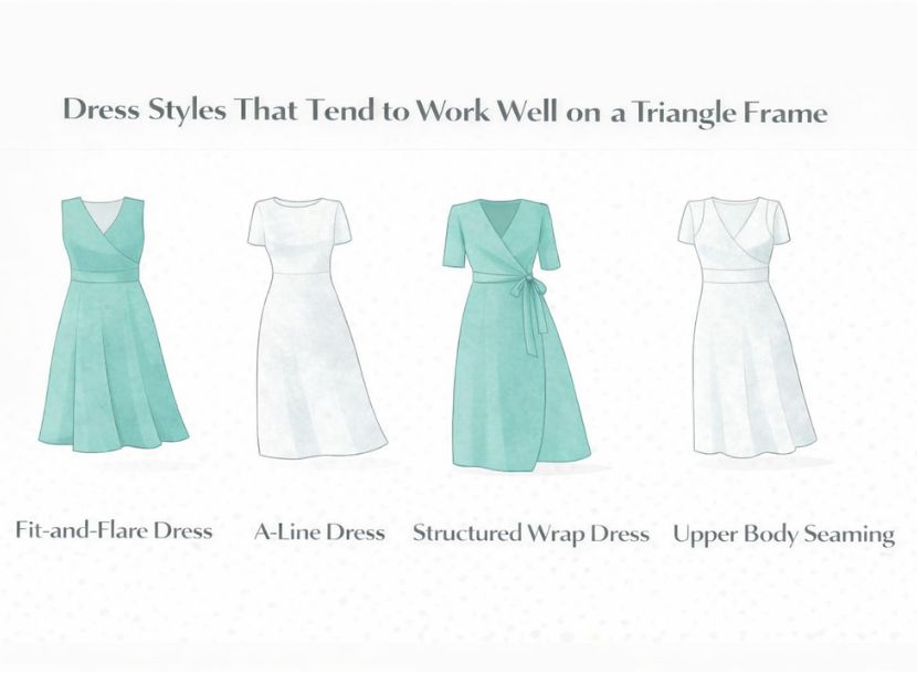 This guide focuses on how clothing behaves on a triangle frame so you can make wardrobe decisions that feel refined, balanced, and practical for real life.
