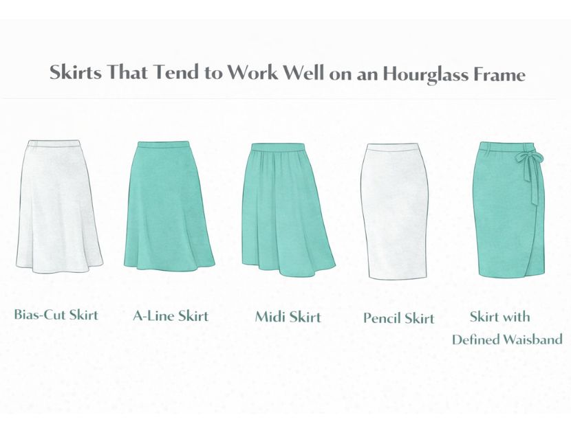 | Skirts | Bias-cut, A-line, pencil with stretch, defined waistbands | Supports natural curves while allowing movement |