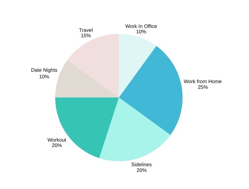 Think of it as a rough pie chart of your week. Work, family, errands, exercise, social plans, events, downtime at home. Approximate percentages, nothing precise. The point isn’t to account for every hour. The point is clarity.