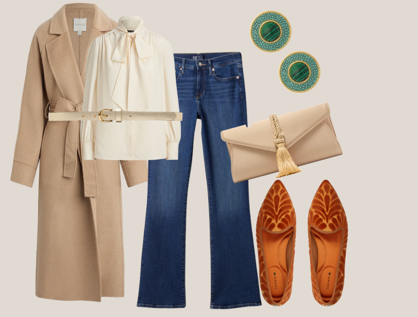 This is such a great look. It has layers of texture, soft movement, and those little pops of color that make an outfit feel interesting without losing its elegance. It is elevated, wearable, and very much in the spirit of modern bootcut styling.