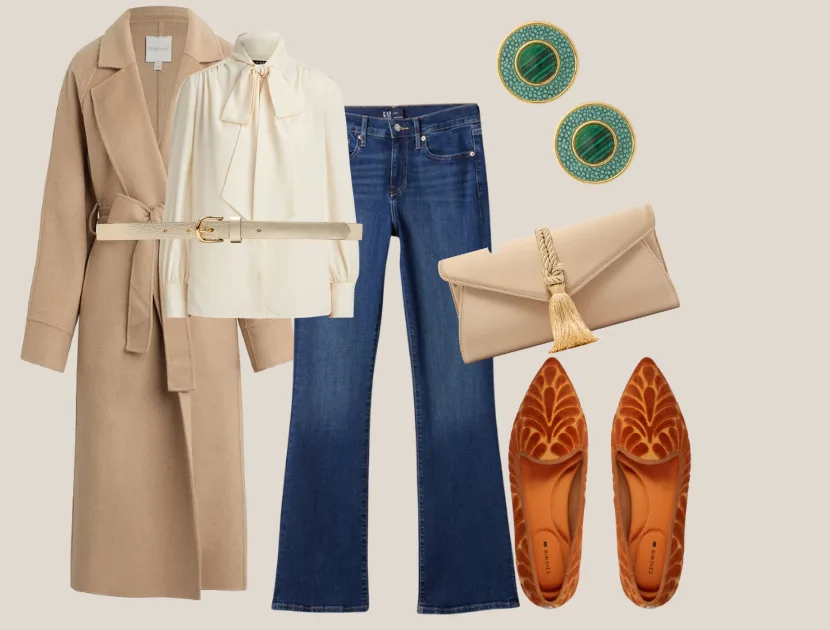 It is another trend from the early 2000s coming back, and it can look incredibly chic when you keep the palette simple. My advice is to stick to soft neutrals and skip the bold patterns. The blouse featured above is the Georgette Tie Neck Blouse from Ralph Lauren, but you can easily swap in the 100 percent washable silk option from Quince if you prefer something lighter or more budget friendly.