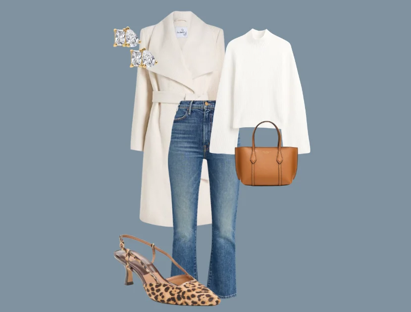 Then we finish with a few accessories I am genuinely excited about. I just received the Odela Heels Leopard Calf Hair slingbacks from Dolce Vita. They were originally $160 but are currently on sale for $99 and still have a full size range. I love a slingback with an ankle jean, especially when there is a slight flare. The shape of the shoe complements the cropped length and gives the outfit a polished finish. These are a true closet staple.