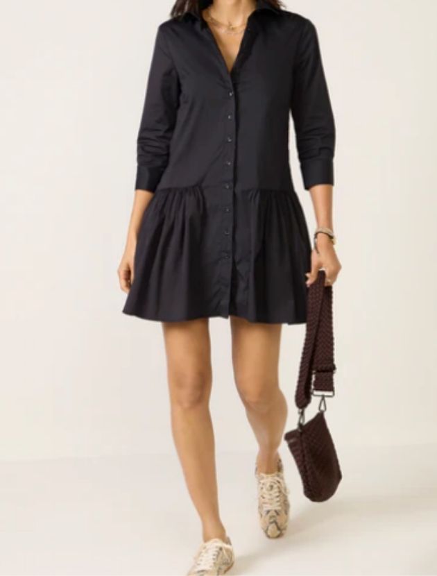 This is an easy, versatile 100% cotton shirt dress that works especially well for warm weather and travel. The drop waist gives it movement without feeling fussy, and the crisp cotton keeps it looking polished even after a long day. It’s the kind of piece you can throw on and feel instantly put together.