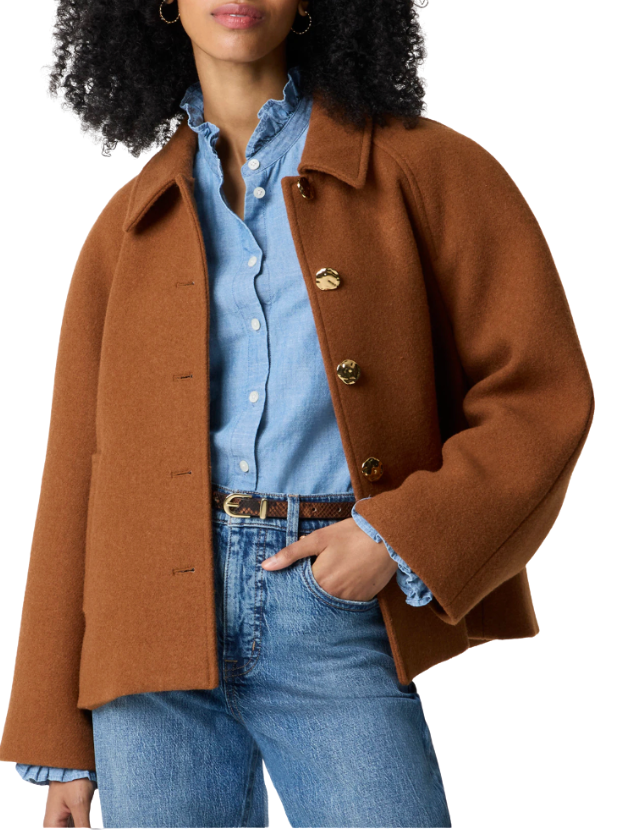 This top-rated coat is one of those pieces that looks far more expensive than it is. The cropped swing silhouette is classic and flattering, with room to layer over sweaters without feeling bulky. The Mocha Latte shade is the perfect rich neutral for fall and winter, and every color option is both on trend and versatile. The oversized, elevated buttons give it a tailored, vintage-inspired finish that makes the whole piece feel special. Available in classic and petite sizes.