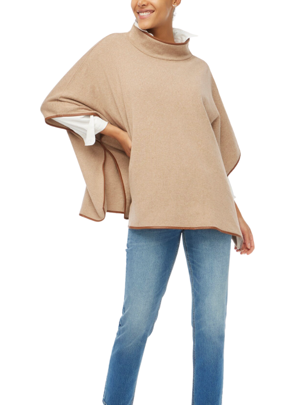This best-selling poncho has that elevated, Tuckernuck-inspired vibe but for a fraction of the price. The faux leather trim adds a polished touch that instantly makes it look more expensive, and the styling possibilities are endless. I love how they’ve layered it over a crisp button-up, but it would look equally chic over a fitted turtleneck with jeans or slim trousers. The Heather Mushroom color is especially versatile and flattering for fall and winter.