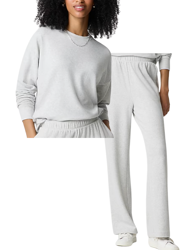I have this set, and it is wildly comfortable. The Cloudspun yarn is buttery soft and lightweight but still warm, making it ideal for cozy days at home or casual weekends. The straight-leg pants give it a modern, flattering shape, and the matching crewneck sweatshirt completes the look effortlessly.