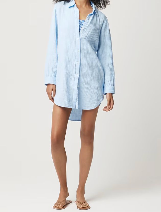 An easy, lightweight cover-up in 100% cotton with a relaxed, breathable feel. Perfect over a swimsuit at the beach or pool, but polished enough to style with sandals for lunch afterward. The longer length gives great coverage without feeling heavy.