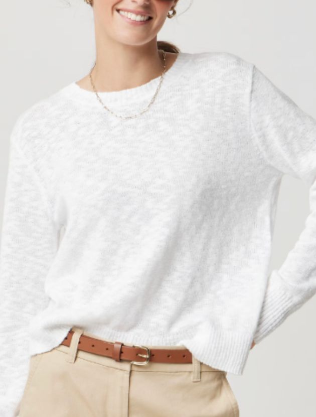 A lightweight, relaxed crewneck that works especially well for travel or warmer weather. Easy over denim, shorts, or thrown over your shoulders with a simple tee or tank. The slightly slouchy shape keeps it casual without looking sloppy. Available in white, lilac, khaki and blue.