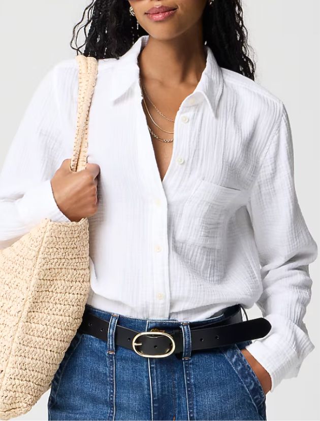 Buy: Double-Gauze Button-Up Shirt (J.Crew Factory): $58.50 | Sizes XXS–3X | Regular & Petite