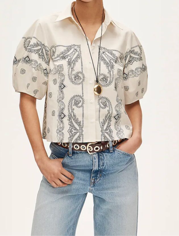 Buy: Bell-Sleeve Button-Up Shirt in Bandana Print (J.Crew): $148 | Sizes 00–24