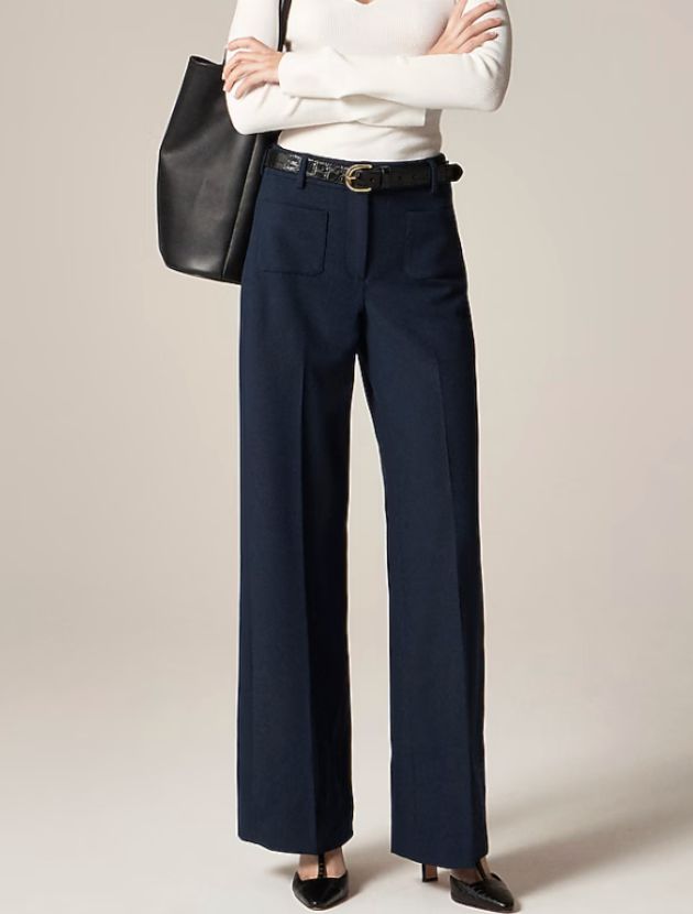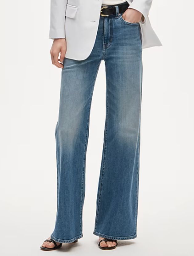 This is a great option if you want something a little more polished than a traditional wide-leg jean. It sits clean through the hips and then opens up through the leg, which gives you that long, flattering line. The trouser styling makes it easy to dress up with a blazer or simple knit, but it still feels casual enough for everyday.