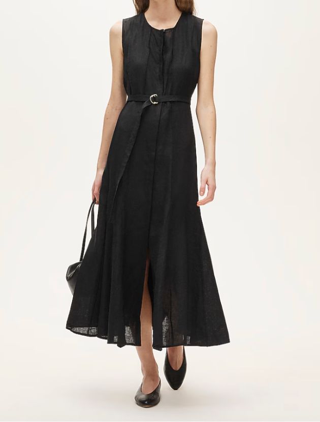 This is just a really chic, simple dress. The shape is clean and flattering, with subtle seaming that gives it structure without feeling fussy. The removable belt lets you define the waist or wear it more relaxed, and in black it looks especially polished. Easy to dress up with a sandal or heel, but just as good worn casually with something flat.