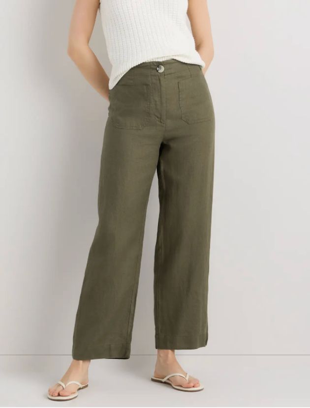 100% European Linen Patch Pocket Wide Leg Pants