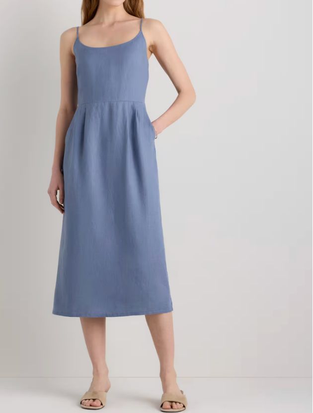 Love this for vacation. The scoop neckline is clean and flattering, the midi length is polished (tailor as necessary), and the linen drapes beautifully without being stiff or fussy.