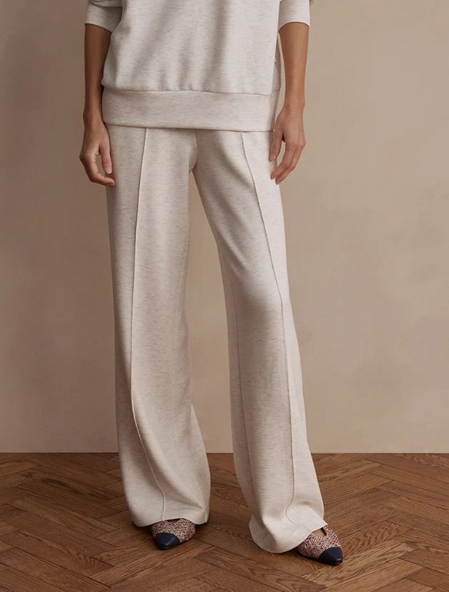 Same DoubleSoft fabric, same high rise waist and drawcord as the Slim Cuff, but with a wide leg and an elegant pintuck detail that makes it feel more like a trouser than a sweatpant. It is a genuinely beautiful pant and the one I get the most questions about.