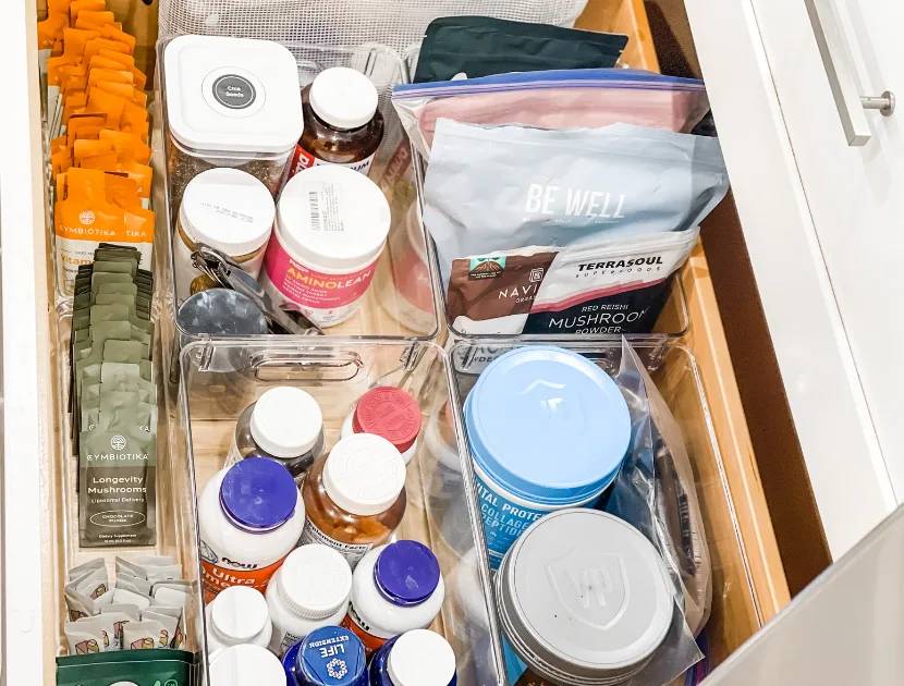 To make my life easier, I keep all the ingredients in this drawer that sits under where I store our blender.